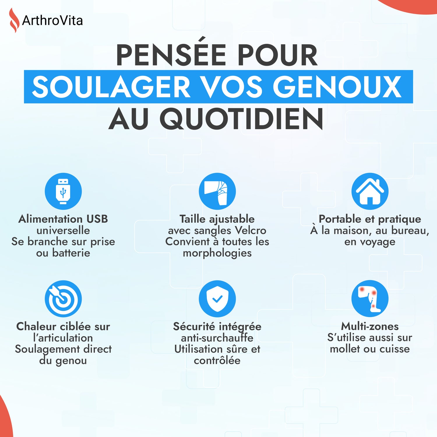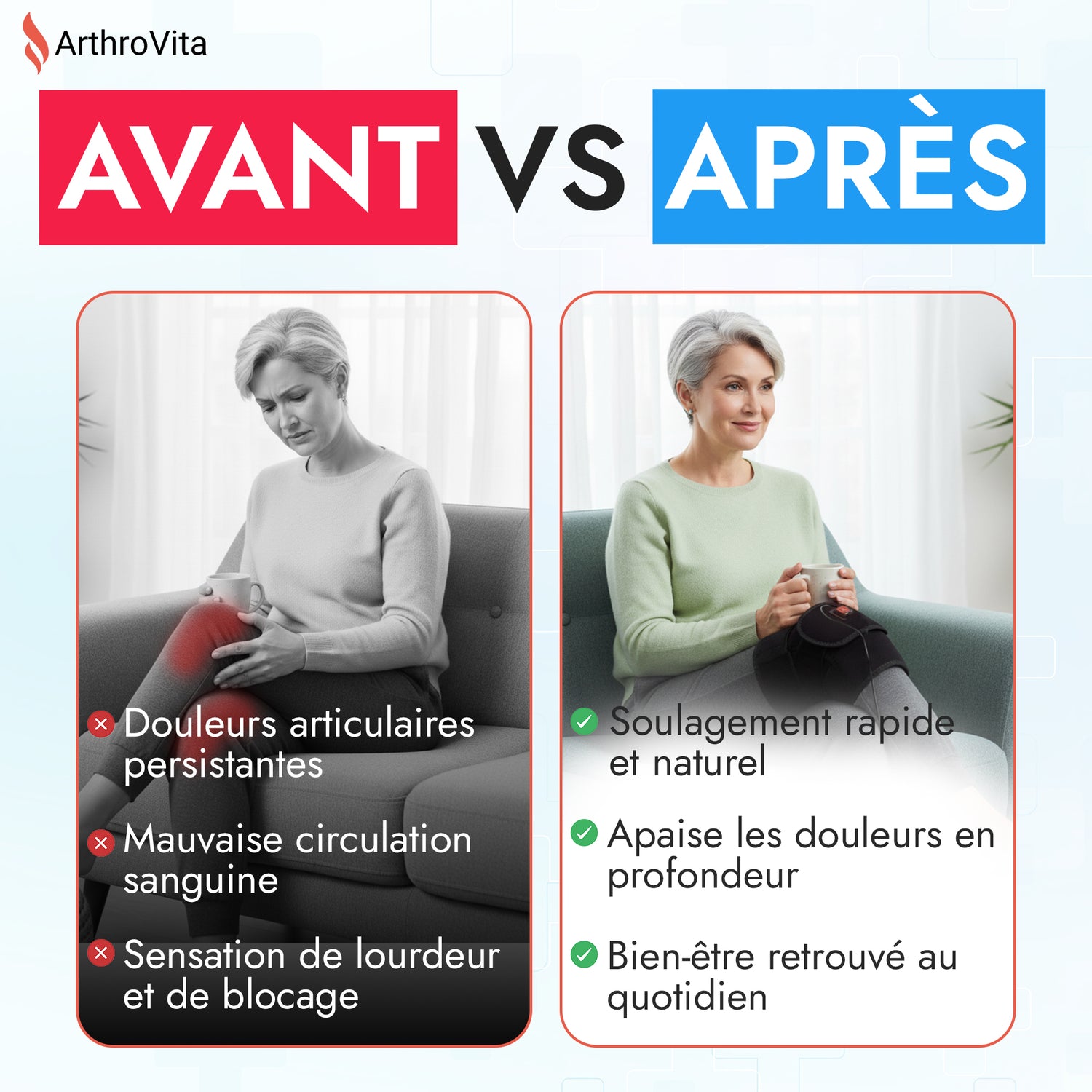 Grâce à cette collaboration, ArthroVita propose une solution moderne, inspirée des pratiques utilisées en cabinet de kinésithérapeute et pensée pour améliorer le confort et la mobilité articulaire jour après jour.