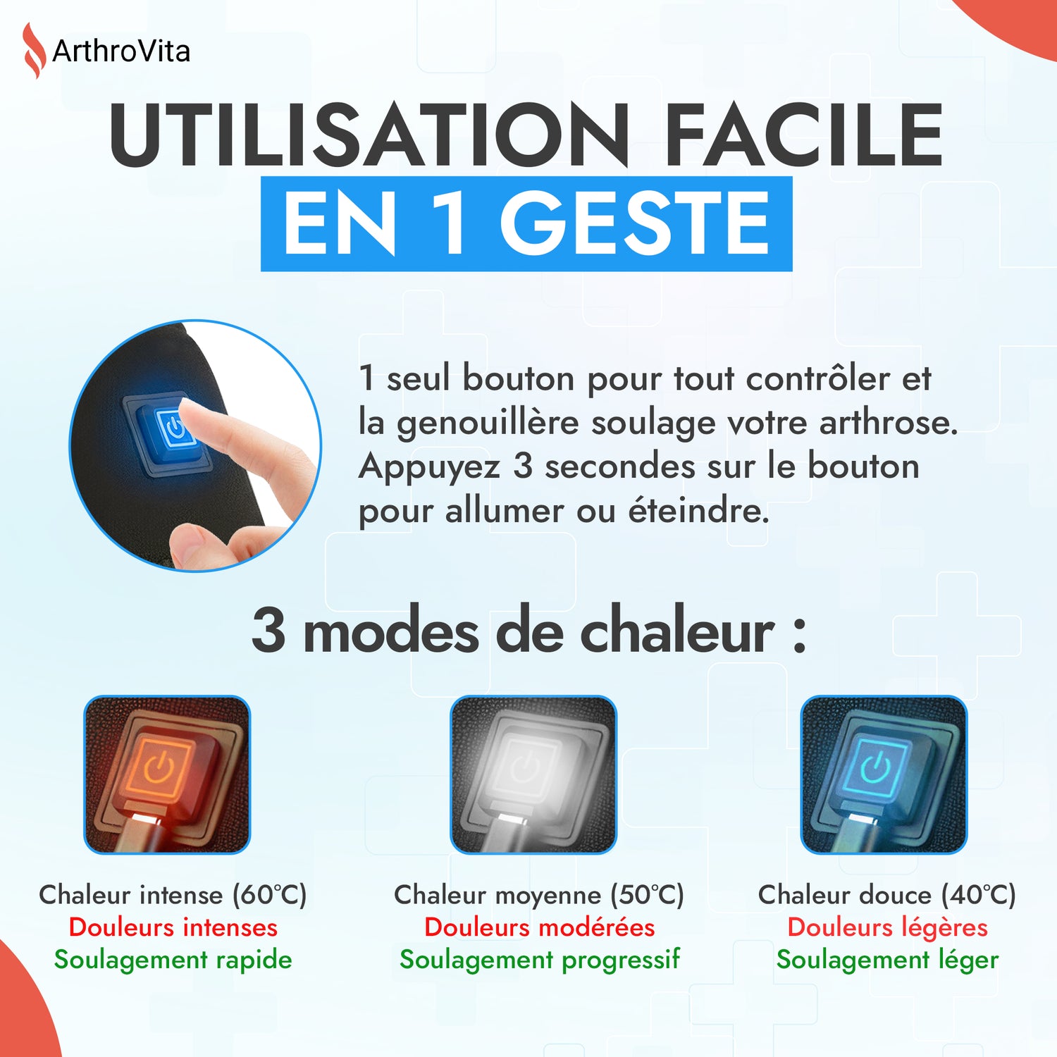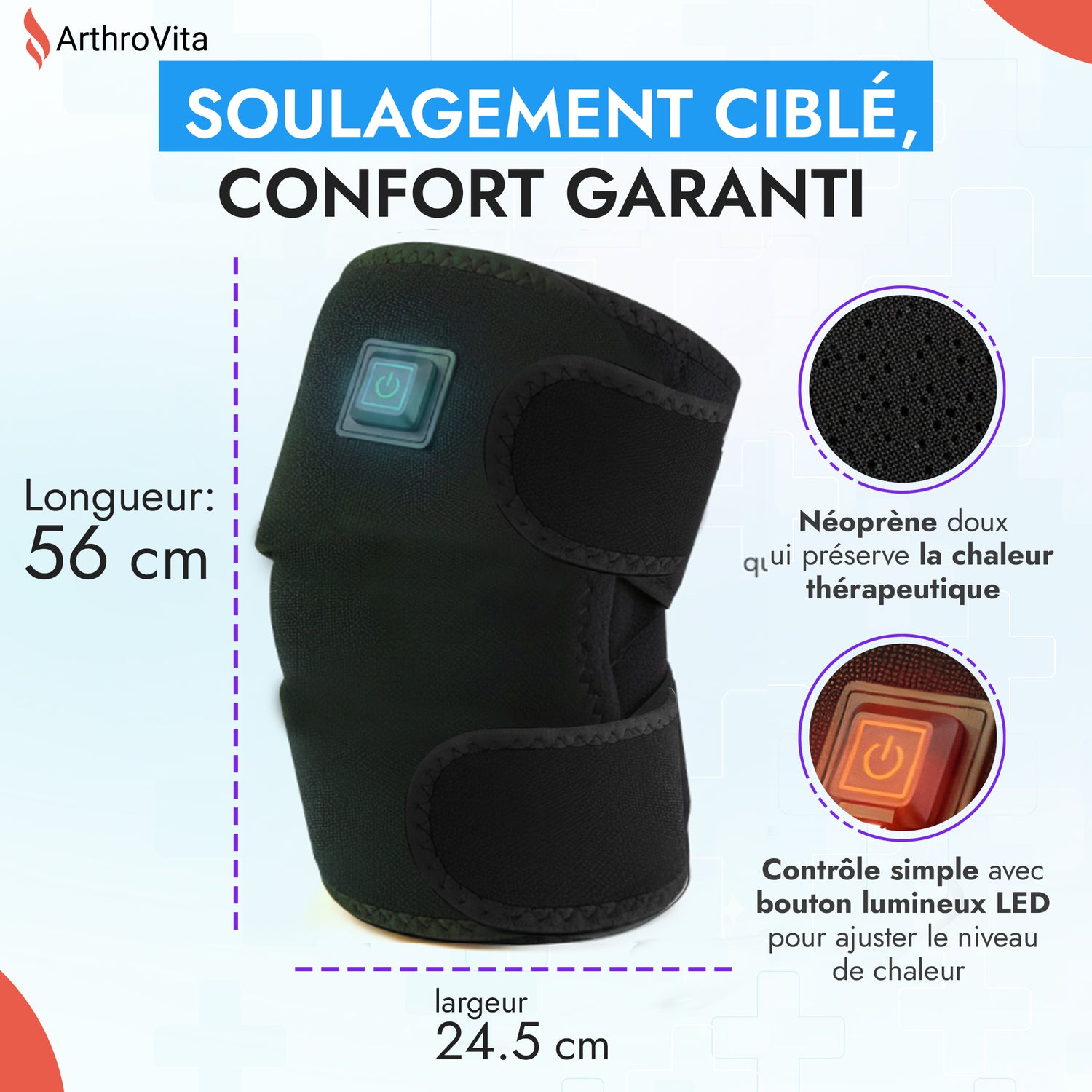 💡 C’est pour vous aider à retrouver votre confort et votre liberté de mouvement, sans médicaments ni traitements lourds, qu’a été conçue la genouillère chauffante ArthroVita, inspirée de la thermothérapie naturelle.
